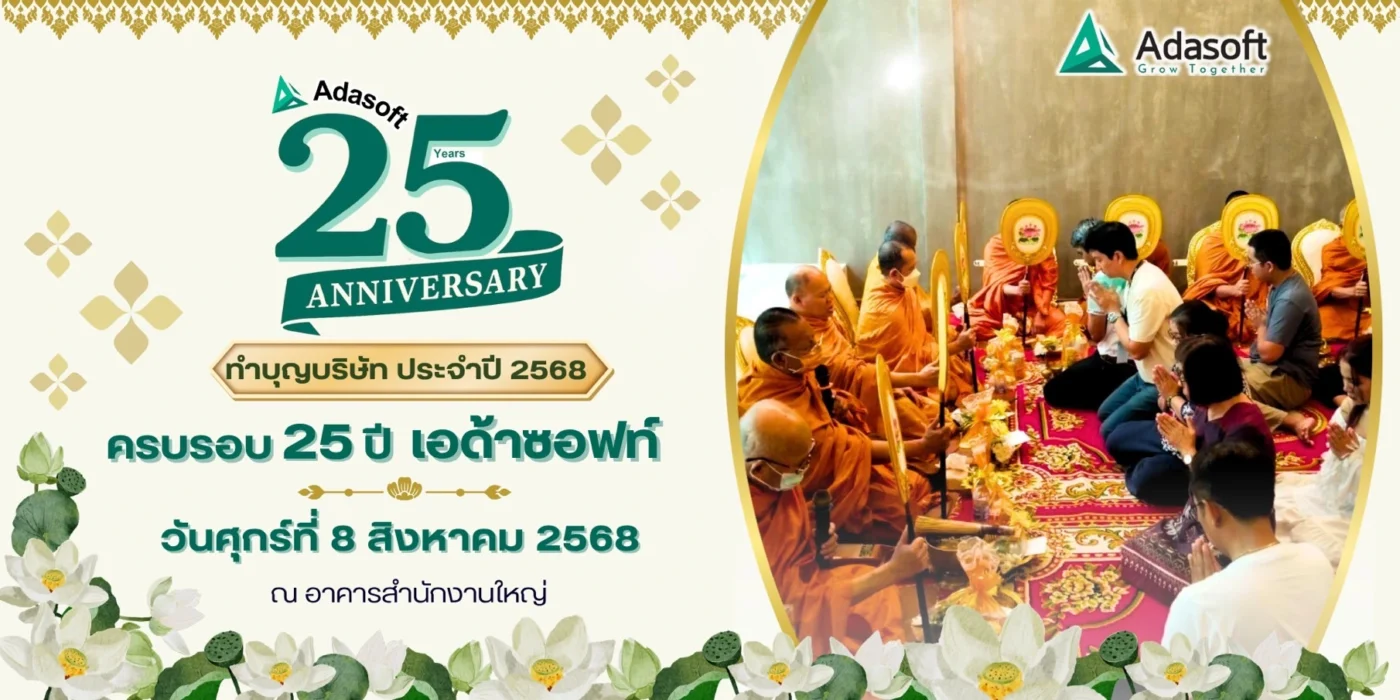 08 ส.ค. ข่าวสารและกิจกรรม🎉✨ 𝟮𝟱 ปีแห่งความสำเร็จของ 𝘼𝘿𝘼𝙎𝙊𝙁𝙏 – 𝙂𝙧𝙤𝙬 𝙏𝙤𝙜𝙚𝙩𝙝𝙚𝙧 ✨🎉 โพสต์เมื่อ โดย Adasoft อ่านเพิ่มเติม →